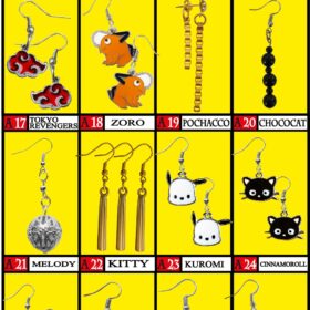 Aros metal- Naruto- Pochita- Tokyo revengers- Zoro- Pochacco- Chococat- Melody- Kitty-Kuromi- Cinnamoroll- Sanrio