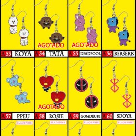 Aros metal- Kimetsu-South park-Kocho-Labubu-Stitch-Pikachu-Dragon ball