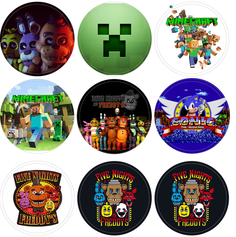 Cantidad Pins metalicos 56 mm- Especial Videogames: Creeper-Minecraft-Sonic- Five Night