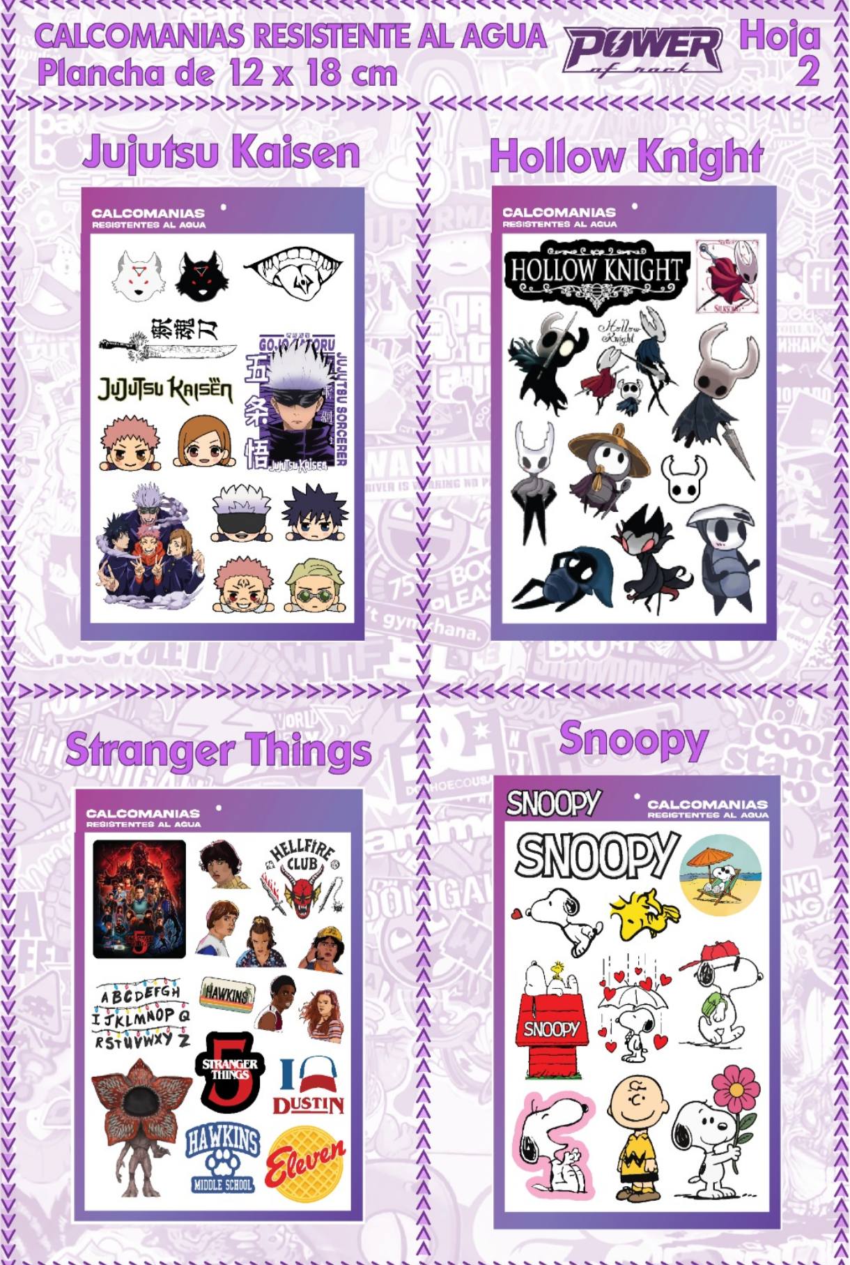 Stickers Resistentes: Jujutsu kaisen- Hollow Knight- Stranger Things- Snoopy